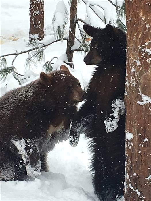 【不要去森林逗熊】雪地里穿着鲜艳衣服的话容易暴露目标,一旦被不冬眠的熊盯上,请自觉脑补后果,这也是亚利桑那州野生动物园的日常。
