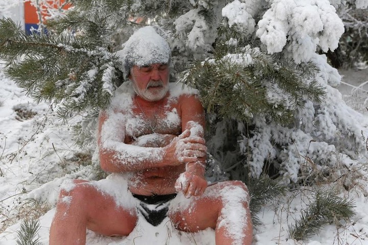 【要在雪地搓澡】图中的男子来自西伯利亚,俄罗斯人,说这两点的意思就是赞叹:不愧是战斗民族!