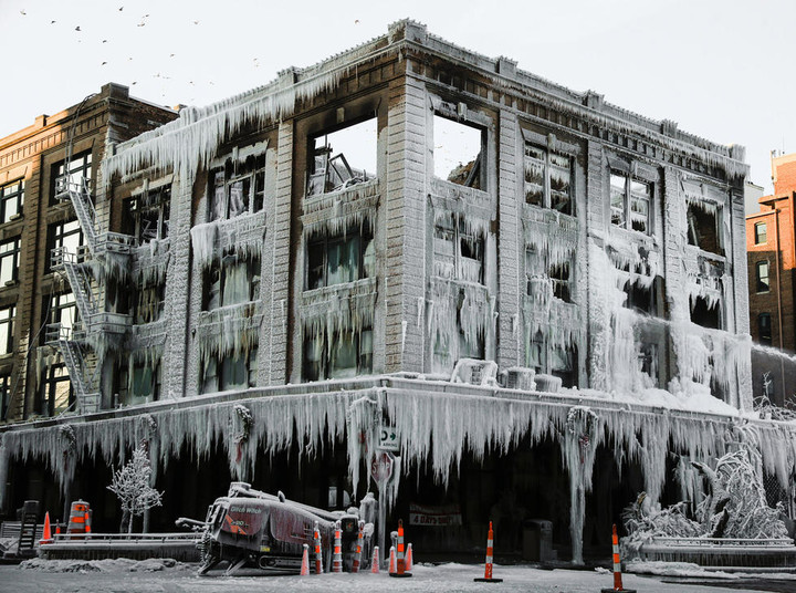 【要开消防灭火】图中的建筑位于美国奥马哈市,1月10日刚刚这栋建筑起火,消防人员赶到现场喷水时,水流变成了冰柱,也算是一道奇观。