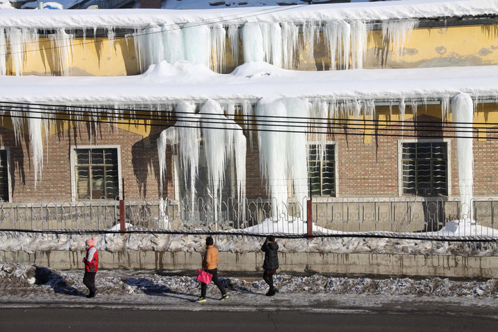 【不要在屋檐下走】比起美国的消防队员的“杰作”,中国新疆阿勒泰地区的冰挂更加有自然鬼斧神工的味道。