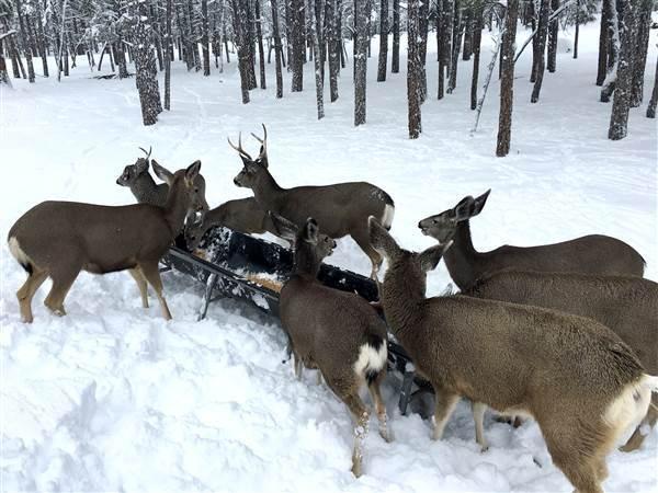 【要在公园看驯鹿】同样是一场暴雪袭击了美国亚利桑那州的野生动物园,小鹿们都出来觅食,这个时候还少了圣诞老人和他的雪橇。
