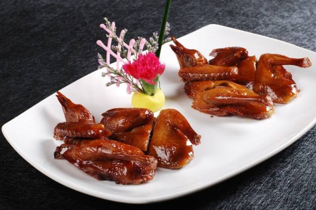 泮塘路上的燊记乳鸽专门店值得一试。这家店门面不大,但出品不错,整只乳鸽炸得非常均匀,色泽亮丽。保持着外脆内软的口感,肉汁随着乳鸽皮为咬开后窜进口中,这种美味还源自于厨师对乳鸽红烧之前的精心腌制,几乎连骨头都有味道。