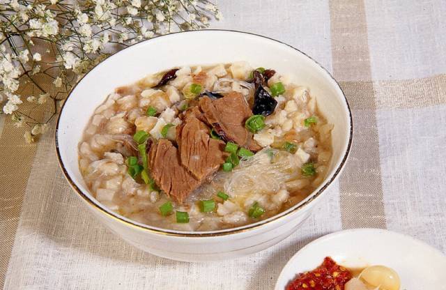 羊肉泡馍所要掰的“托托馍”纯属特制,看似普通的一块饼,虽然掰一块放入口中虽感酥脆甘香,但是注意,馍只有七分熟,目的就是为了上火入汤烹煮不散。高汤里拥着小块小块的馍馍,柔软的粉丝、鲜嫩的肉、入味的青蒜和木耳……就着糖蒜,就这么热热的一口口吃下去,熨帖舒服极了!