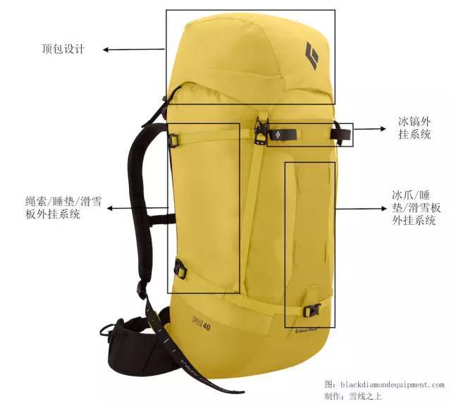 典型的登山背包,BlackDiamond SPEED 40,这个背包也可以用作高山滑雪。图片来源:blackdiamondequipment.com