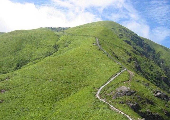 武功山草甸在海拔一千六、七百米左右,绵延数十万亩,多在山顶平缓之处。春翠、夏绿、秋黄是高山草甸的一大奇观,不同的季节,甚至不同的时辰去武功山都能领略到不同的景致,让你留连忘返。据庐山植物园林业专家考证,在如此高的海拔,生长着如此大面积的高山草甸,不仅在中国,乃至整个亚洲都十分罕见。她是江西的一块绿色宝地