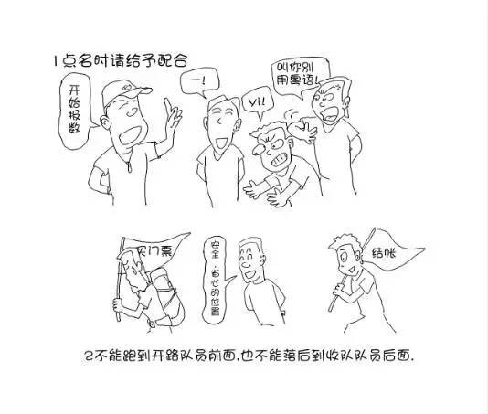 1:集合后不能私自行动,最好两人以上并告知领队。