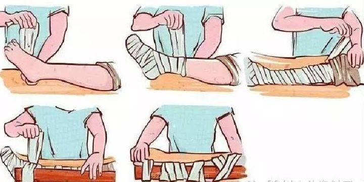 把骨折部位固定,例如断脚可以固定在另一只脚上,断手可以固定在胸部、坚硬的木板上等等。