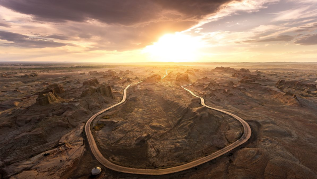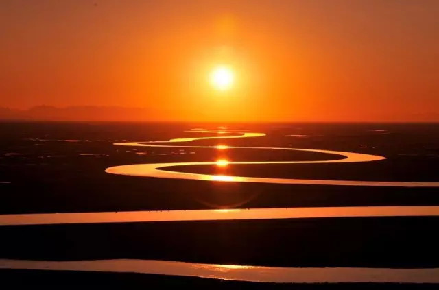 库木塔格,维吾尔语是“沙山”之意。库木塔格沙漠的形成,主要是因为来自天山七角井风口和达坂城风口的狂风,沿途经过长风程,挟带着大量沙子,最后在库木塔格地区相遇碰撞并沉积,形成“有沙山的沙漠”这一独特的景观。让人不禁赞叹“大漠孤烟直,长河落日圆”的壮景。