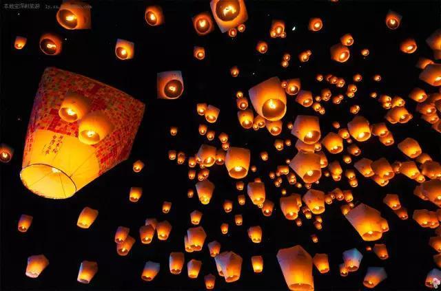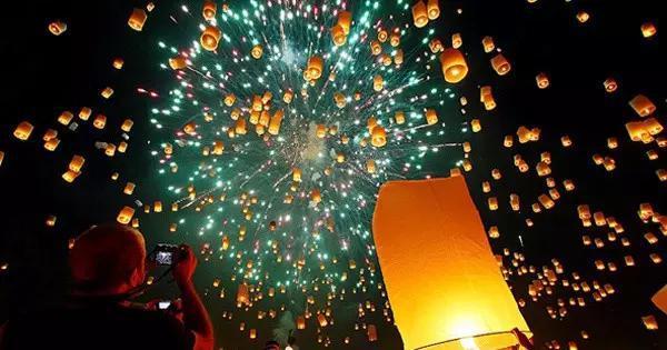每年这天晚上,都有上万只天灯带着人们的心愿,飞上天空,僧侣也会在一旁祈福巡烛。