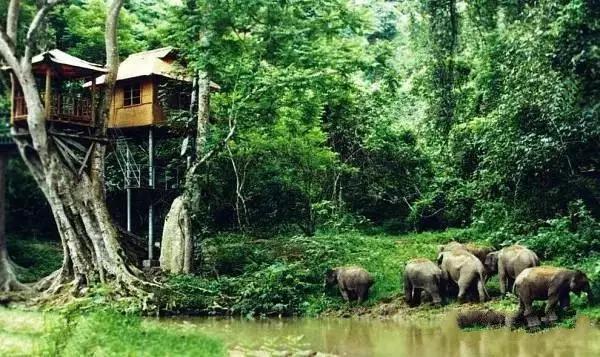 在这里,可以深入雨林,来场刺激的大冒险,寻找珍稀的动物;可以夜宿树上的小木屋,看庞然巨物般的野象从脚底走过,感受它让地球都为之震动的巨大力道;还可以坐在象背,俯看雨林,观察它的生活习性。