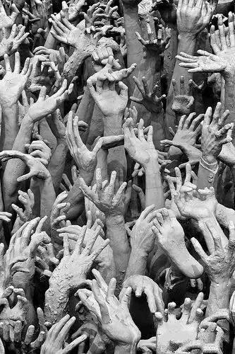 而这个白庙最大的特色就是庙前的桥,桥边满满都是骇人的魔鬼般的手,传说人去世后要想上天堂见到佛祖就一定要经过这座桥,只有没做过坏事善良的人才能通过,邪恶的人会被桥边的手以及守门的神拉下地狱。