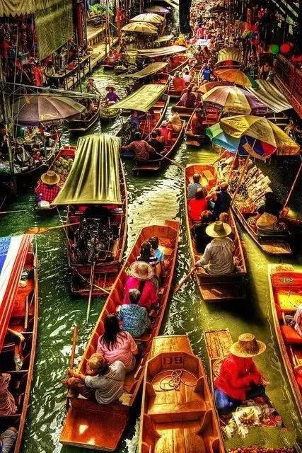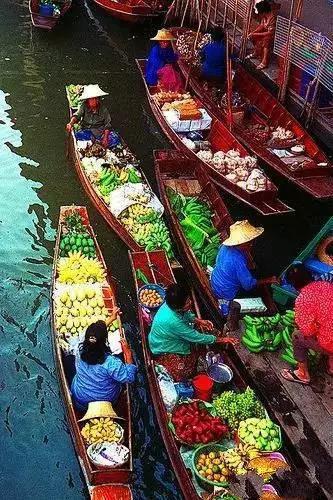 住在河岸边的水乡居民足不出户就可以买到新鲜的蔬果,这热闹喧嚣的场面中透出浓浓的泰国风情,这是一幅令人深感亲切而又典型的曼谷印象图卷。