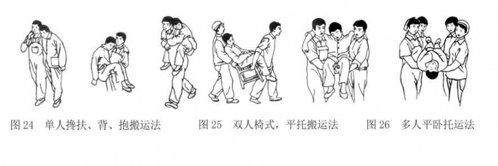 a 、单人搬运法是用搀扶、背、抱等方法(图24)。