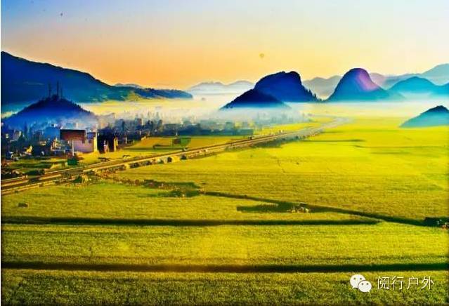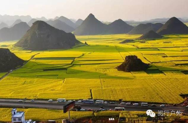 登山远眺,可以看到花海中的玉带湖、腊山湖、湾子湖象三面银光闪亮的镜子,衬托着山色青翠的白腊山;油菜花海里,村落点点,寨子棋布;此起彼伏的喀斯特锥形山,点缀花海中,有如人间仙景,构成绝妙的图画;牛街石岩溶洼地,是喀斯特岩溶中的一种典型地貌,呈现出别致的“千丘田”田园风光。