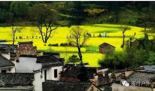 婺源成为赏油菜花的胜地,离不开其“中国最美丽乡村”的身份,在漫山遍野的金黄色中,掩映着的是白墙灰瓦的徽派建筑,簇拥在一块儿的村落、翘翘的马头墙、傍晚时分升起的袅袅炊烟,水墨画一般。