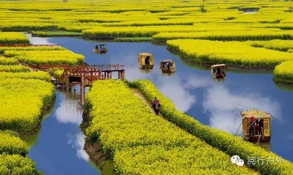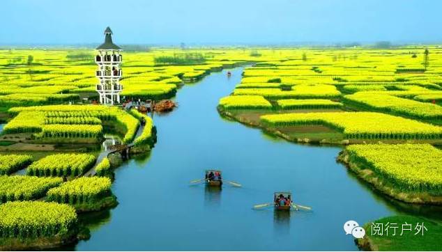 江苏兴化位于长三角经济带北缘,建城已有2300多年历史,是江淮地区的一颗水乡明珠,有着深厚的文化积淀和独特的水乡美景。“兴化千岛菜花”位于兴化市缸顾乡,以千岛样式形成的垛田景观享誉全国。据考证,750年前,缸顾乡农民在水中取土堆田,整齐如垛,并在上面种植农作物,才演变成现今的生态景致。每年的清明前后,在辽阔的水面上,千姿百态的垛田形成了上千个湖中小岛,岛上开满金灿灿的油菜花,在水面上形成一片金黄色“花海”,一望无际,令人叹为观止。