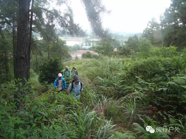 饭后休整,再度出发,走在机耕路上,是轻松的一段,两旁的芦苇锋利的锯齿,使不穿长袖衣的新人,苦不堪言,逼着举手投降,以求安全渡过。领队提醒行进速度加快,以安全穿越塌方地。不太辛苦的行进,补水休整一会,便到了发射塔急降区。集合全队,领队传授急降心得,收起登山杖或用一根并调长,有手套的戴上,以免划伤手。安全急降,又是一段机耕路,完成环线,顺利回到出发点。打点行装,踏上归程,队友们分享着户外心得,新人意犹未尽!我对山野一见钟情,不觉恋上户外,爱上了阅行!