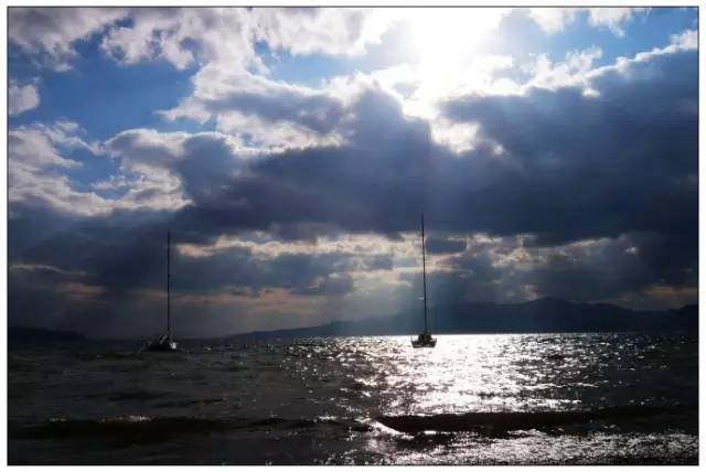 抚仙湖是我国最大的深水型淡水湖,蓄水量为云南第一,因其面积广大,水深达百米,湖面风大浪涌,岸边沙滩绵延,颇有海的气息,所以被云南人称为“高原大海”。身处云贵高原,纵然昆明号称“四季如春”,冬日的阳光看上去明媚却也热量不足,下湖戏水那是断断不行的,躺在沙滩椅上晒晒太阳吹吹风,就已经够惬意了。逐渐天气有点变化,不再是中午的艳阳高照,太阳躲进了云层,湖面也不再波光粼粼,透出一种深沉的灰蓝色;倒是偶而当太阳在云层的缝隙间露一小脸,便仿佛万道光剑从苍穹射向湖面,把那一片湖水映得银亮一片,近似虚空,长久凝视下,让人忍不住猜想哪里是不是有什么仙人即将驾临......