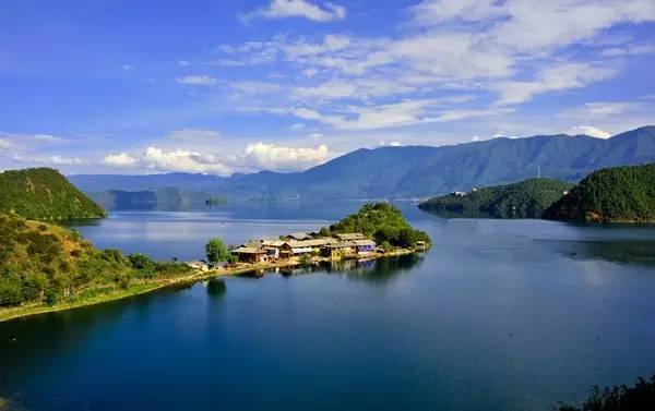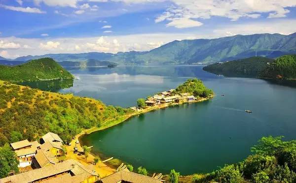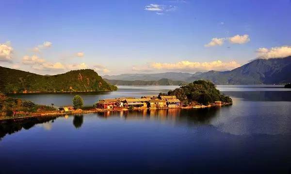 泸沽湖,当地人称“谢纳咪”,意为大海、母湖,从高处鸟瞰,如一只展翅的飞燕也是四川的第一大天然淡水湖,湖水面积50.8平方公里,另有万亩草海,水面海拨2688米,被誉为“高原明珠”。湖中七岛,婷婷玉立,林木葱郁。湖的西北面,雄伟壮丽的格姆山巍然矗立,这即是纳日人为之崇拜而人格化的格姆女神。湖的东南南,与草海连接,这里牧草丰盛,牛羊肥美,浅海处茂密的芦苇随风荡漾,蔟蔟的花草迎风招展,每到冬季,天鹅、黑颈鹤等珍稀候鸟数以万计栖息于此,凭添一种生气,一种景致。湖周,在那茂密的原始森林里,虎、豹、獐、鹿、岩羊、小熊猫、短尾猴、斑羚羊等珍稀动物出没其间,给人几分畏惧,几分野趣。湖畔,阡陌纵横,田园万顷,日出而作,日落而息,木摞房舍,炊烟袅袅,牧歌陈陈,渔火点点,阿哥阿妹,结伴相随,好一派景象万千的农家农园,令游人魂不守舍!