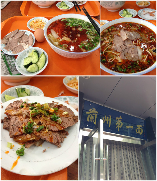 时间就仅够我们在市区吃顿拉面了!我们选择了金鼎,面没有马子禄那么多花样,只有10元、20元、粗、细可以选,20元比10元的多肉、多蛋,另外,一定要点那个牛肉,好吃到爆,作料就是这么简单,一点点盐、一点点辣子、一点点葱,赞!