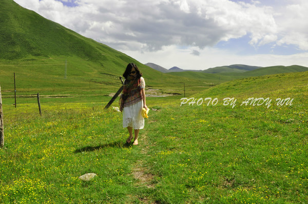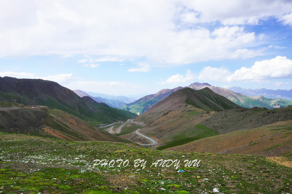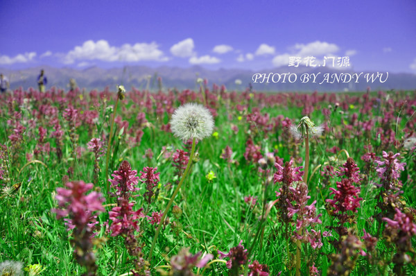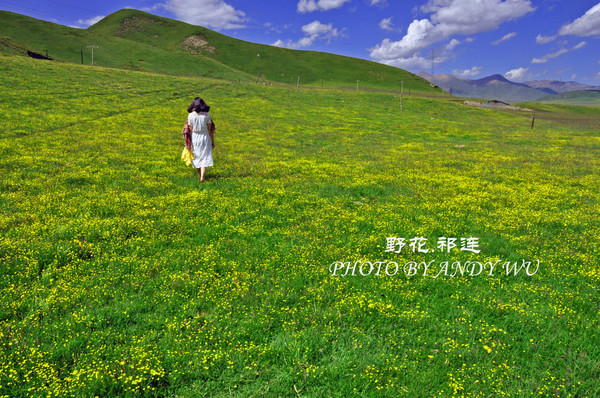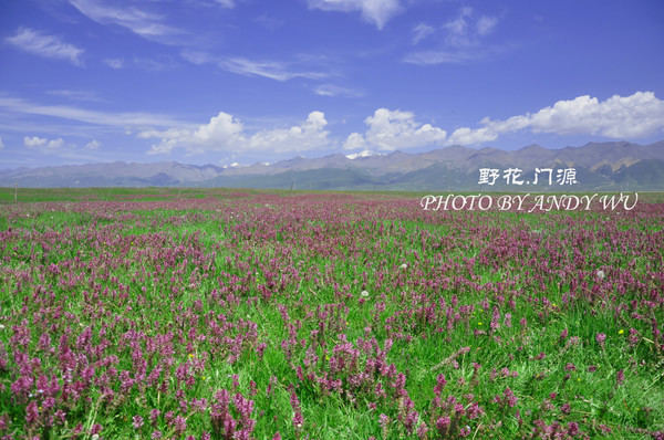 出祁连县城不远,一直也是昨天两边连绵不绝的草原、成群的羊和牦牛散落四处,紫色的、黄色的、白色的小花极好的点缀着这片绿毯。