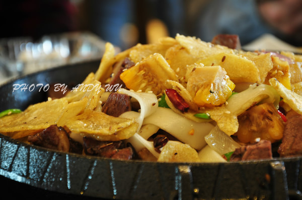 在黑马河乡吃晚饭,炕锅肉,可以选牦牛肉和羊肉,西北地区、土豆绝对是标配的配料,味道蛮好,就是上菜速度慢,让我们错过到黑马河看日落。一般包车司机会拉你去他熟识的地方,如果你有想去的,当然他也就跟着你,但是我建议大家还是跟着司机吧,我觉得旅途中,你更多的放开自己,信任别人,别人也会更真诚对你。炕锅肉有98、128、158、198可以选,我们3男2女,128的就够吃咯。