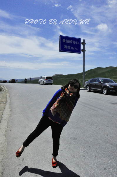 再次经过一个3767M的高海拔地区,司机让我们下车玩一玩,在这里开始,岗什卡雪山就相伴一直到门源,峰顶常年有积雪。