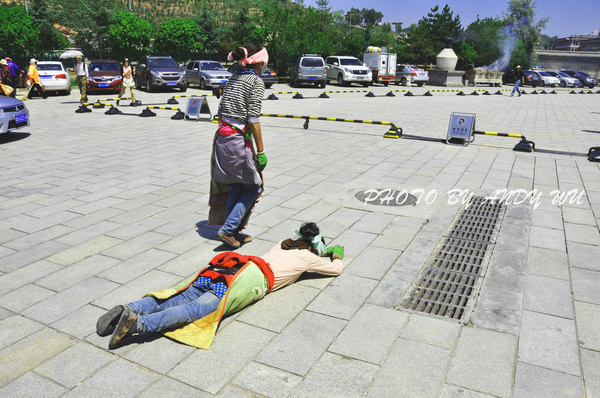 很有幸能亲眼看到一路三跪九叩行大礼的人,作为一个没有信仰的人,看着他们还是挺感动的。找一个信仰很容易,但是真的信仰需要勇气,需要心境!