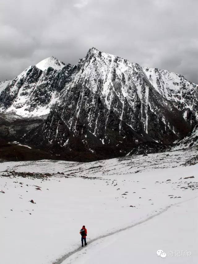 若说翻越卓玛拉山口,挑战的是极限意志。那么此刻,简直成了对耐力的绝对考验。暮色将临,寒风冷雪再次纷纷扬飘落,给天地披挂上晶莹雪白。一遍遍克制想停下来的冲动,顶着风雪,一个人走在没有尽头的漫漫长路。脑中已是一片空白,支撑自己的,只有单纯的信念:向前。一直向前。