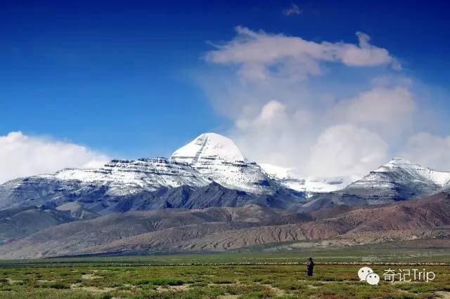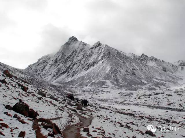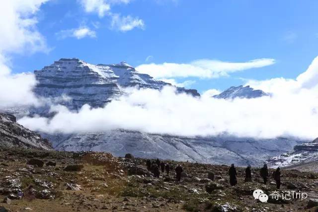 冰峰环绕,茫茫白雪覆盖大地,惘若无人打扰的天上仙境。只一道细细浅浅的弧线,是朝圣者们前赴后继走出的路。
