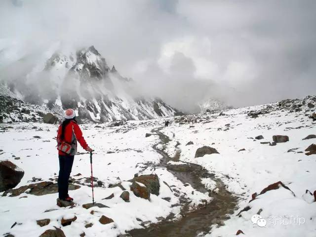 纷纷飞雪,迎风吹来,落满眉间,粘满衣上。 就这么,半挣扎半坚持地跋涉在梦境般的冰雪世界。不时停下来,抖落满身积雪,用拐杖支撑着越来越疲惫的身体。狂风在耳边呼啸,霜雪冻湿着脸庞,彻骨的冷。我知道自己离极限已经不远了,尽头却不知道在何处。