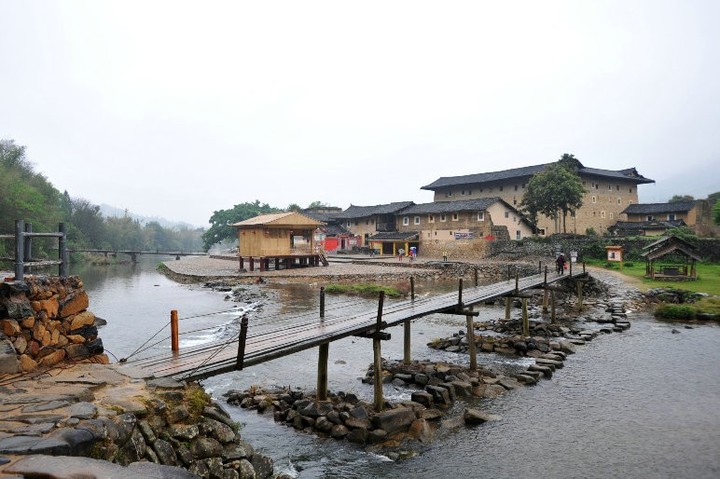 云水谣古镇原名长教,位于漳州市南靖县境内,那里山川秀美、人文丰富。这里是一个幽古神奇的地方,踏入古镇,那幽长的古道、百年老榕树、神奇的土楼,还有那灵山碧水,无不给人们以宁静超然的感觉。村落中,溪岸旁,榕树下,一条条古老的卵石小道交叉穿梭,在静默中浸透着神秘与苍茫。这些古道虽然有的已是坑洼不平,甚至已渐渐被人们所忽略和忘却,但光滑的石子依然承载着一代又一代云水谣人的悲欢离合以及梦想与渴望。曲径通幽,漫步其上,土楼胜景、田园风光尽收眼底,情趣盎然。 这里也是著名的影视基地,由陈坤主演的同名电影《云水谣》就曾在此取景拍摄。
