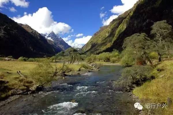 四姑娘山的东面有奔腾急泻的岷江纵贯而过,西有“天险”之称的大渡河。山谷地带气候温和、雨量充沛,山花遍野、溪流清澈;山腰冰川环绕;山顶地势险峻,白雪皑皑。