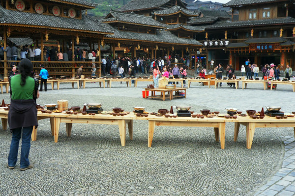 镇远白天就是一个极度商业化的水边古城,客栈众多。。。可以说绝对超出了镇远的游客吞吐量,价钱相差也很大。舞阳河水的颜色很赞,在这里能买到以前在凤凰喝过的米酒,(西江也有)另外这里的道菜很有名,牛肉干也很好吃。