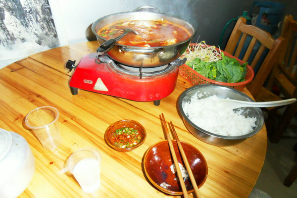 于是找了家店要了一锅酸汤鱼自己吃。。。。 顺便打听下西江去往雷公坪山路的具体情况,得到的答案是岔路较多,建议找向导。
