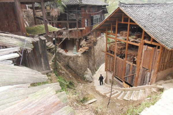继续向下俯视。。。这里是抖寨,未被旅游开发,距离方祥乡十分之近。看到抖寨。。。心里瞬间轻松了。。一个人徒步只带两个面包无向导只靠文字叙述认路线这种事情。。。。能安全是幸运的。。。