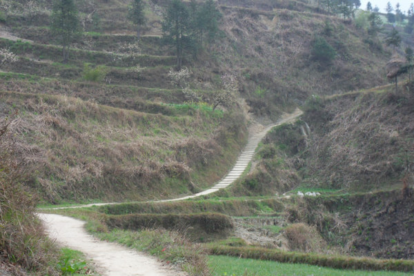 然后一直基本都是比较缓的上行线路。景色基本上是梯田。