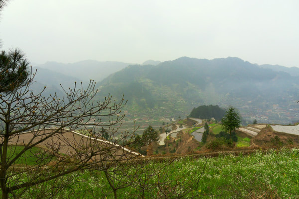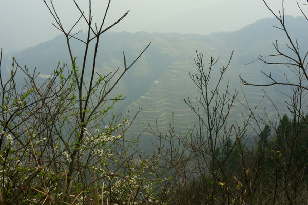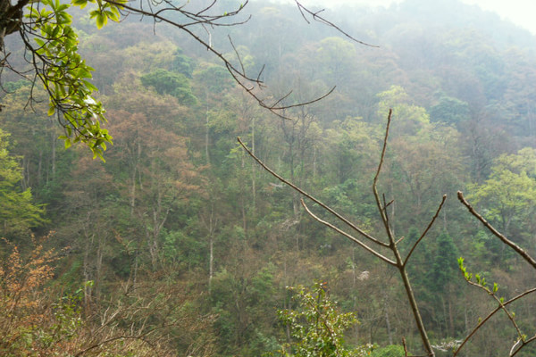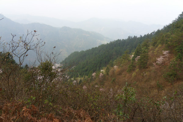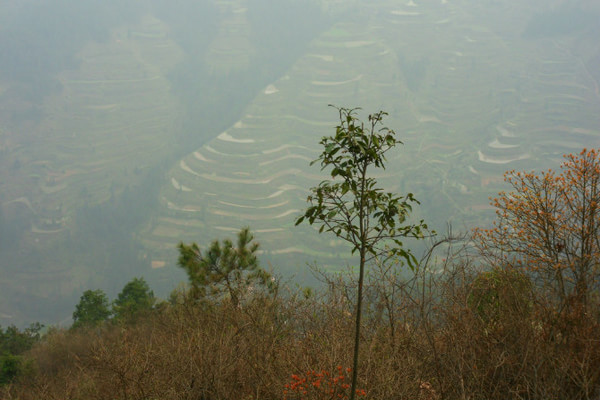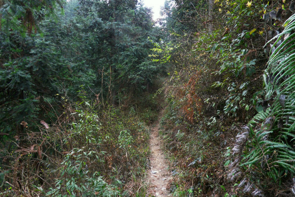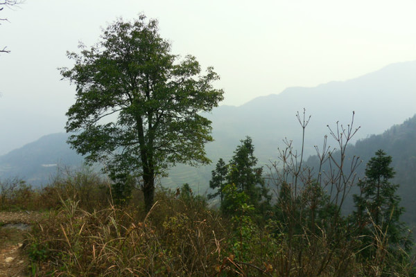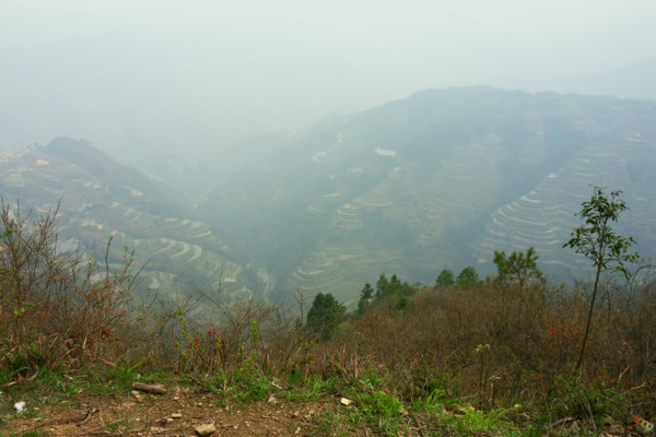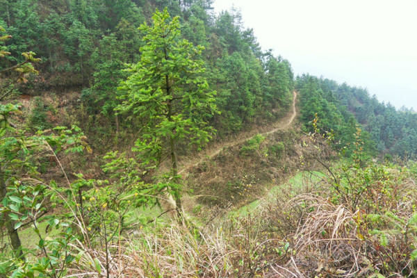 大概从苗寨出发1个小时后,海拔变高,梯田便消失了,景观开始变成了灌木林和松林。