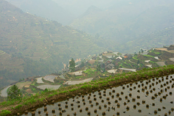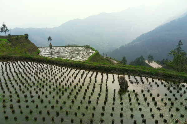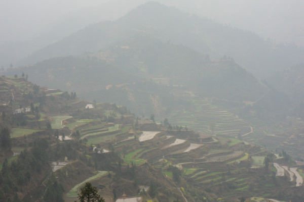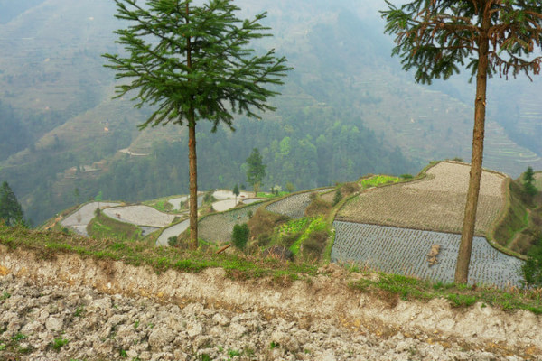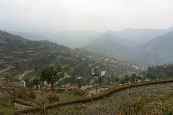 又继续下行了1个多小时才来到刚才看到的梯田处。。。