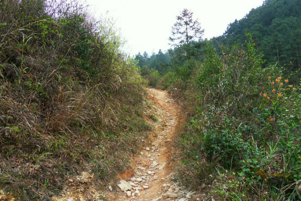 翻过上述山的过程没有图片,至于原因是我是一个很谨慎怕摔到山谷里的人。。。这就是翻过山以后的路,瞬间原始了很多。