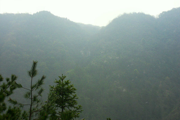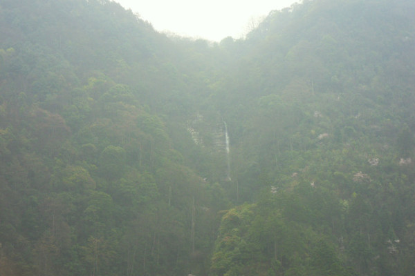远景无力。。。顺着这条路一直走,会发现远处这条瀑布是山这边水渠的尽头,此水的源头就是此行的中间站,雷公坪。瀑布左边的山需要翻过,也是全程最艰难的一段。因为拿不准是不是正确的路所以我折返了,但是就要快回到西江的时候遇见了4个进山采药和蘑菇的苗族朋友,他们告诉我翻过这座山再走大概2个小时就能到达雷公坪,而且中间再无岔路,于是咬咬牙,复折返。。。重走。。。