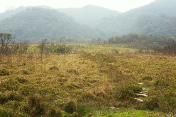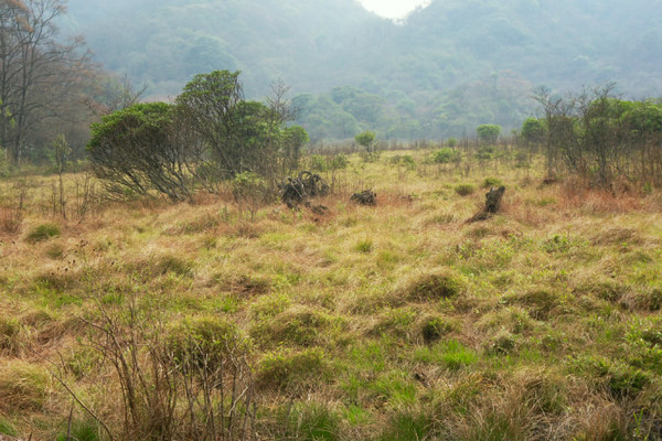 这条路大概40多分钟后,抵达大雷公坪,高山草甸平坝地形,瞬间感觉山好矮,其实是身在山顶而已。这里海拔在1800米。