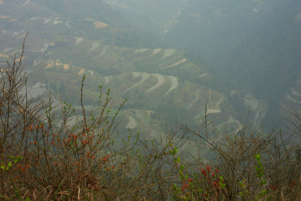 大概1个多小时的下行后。森林小时。。梯田显现。。看着下面的山谷才知道自己深处多高的位置。