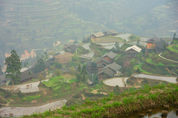渐渐远离西江千户苗寨所在的山谷,来到山腰处。