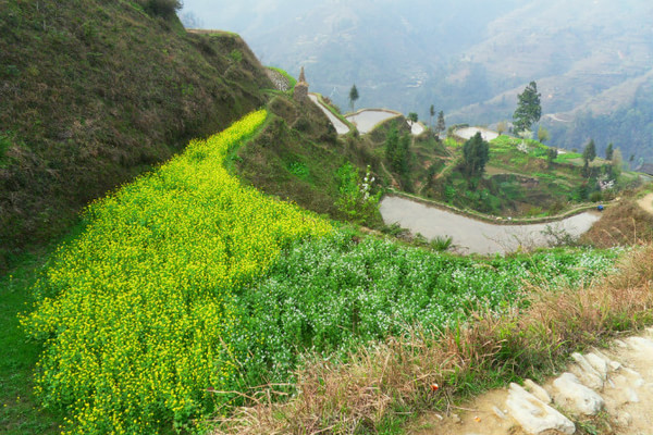 从浙江到贵州,一路上从平原到山地,唯一不变的就是田间的油菜花。