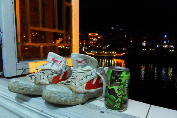 晚上穿着拖鞋绕着舞阳河走了两圈回来住的地方,看着窗台上走过雷公平的鞋,突然觉得应该把手里的啤酒罐放过去。。。。
