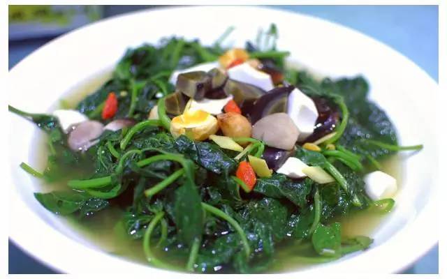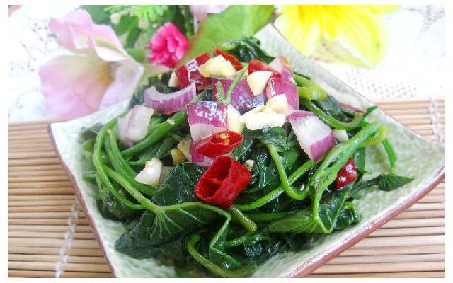 红薯叶里富含人体所需的铁以及维生素A,C,E,每天吃一点就能预防贫血症状。
