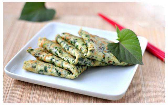 把煮熟的红薯叶去水捣碎,加入适量面粉、鸡蛋、小苏打、食盐等搅拌成糊状,适量加一点点水;