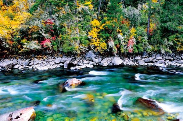 林芝除了斑斓的彩林,这里的水更是值得期待,潺潺溪流,动静皆宜,这也构成了林芝众多的湖泊与河流。