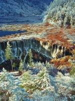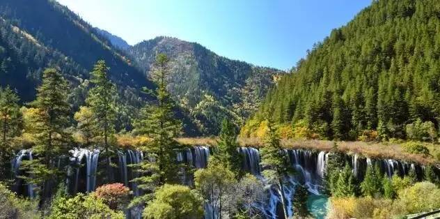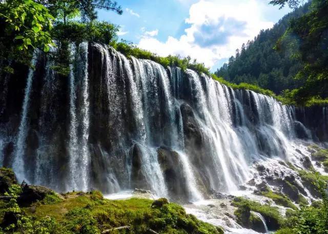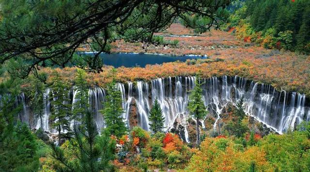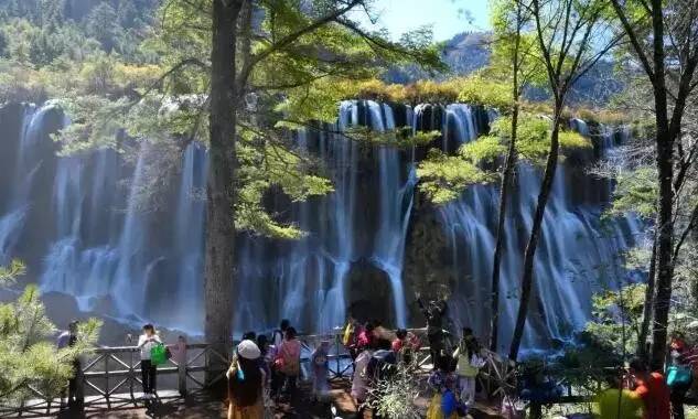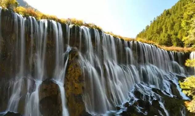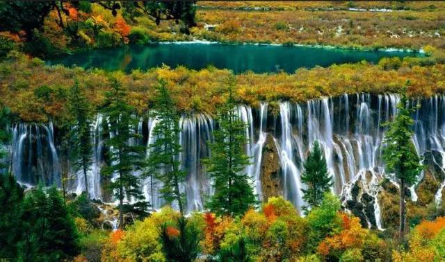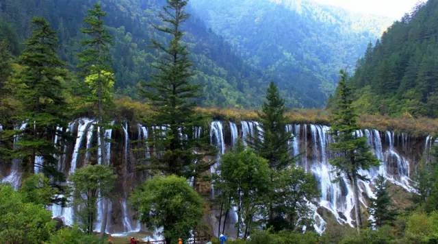 诺日朗瀑布位于九寨沟内三条沟的交汇处,海拔2365米,瀑宽270米,高24.5米,是中国大型钙化瀑布之一,也是中国最宽的瀑布。